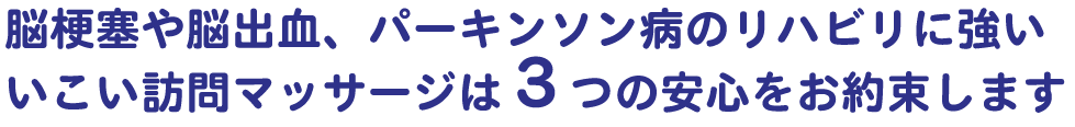 脳梗塞やパーキンソン病のリハビリやマッサージに強いいこい訪問マッサージがその悩みを解決いたしますのでまずご相談ください。