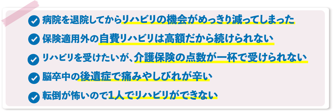 マニュアルが決まっているので、1人1人にあった最適なリハビリプランが提供できない可能性があります。
